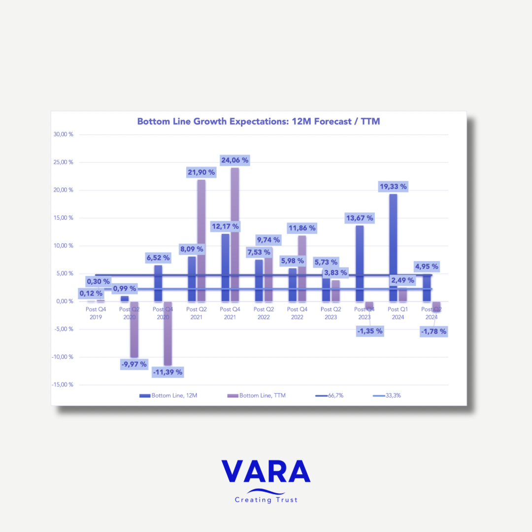 Growth expectations on bottom line are as well now considerable lower (5% vs. 19% after Q1 2024).