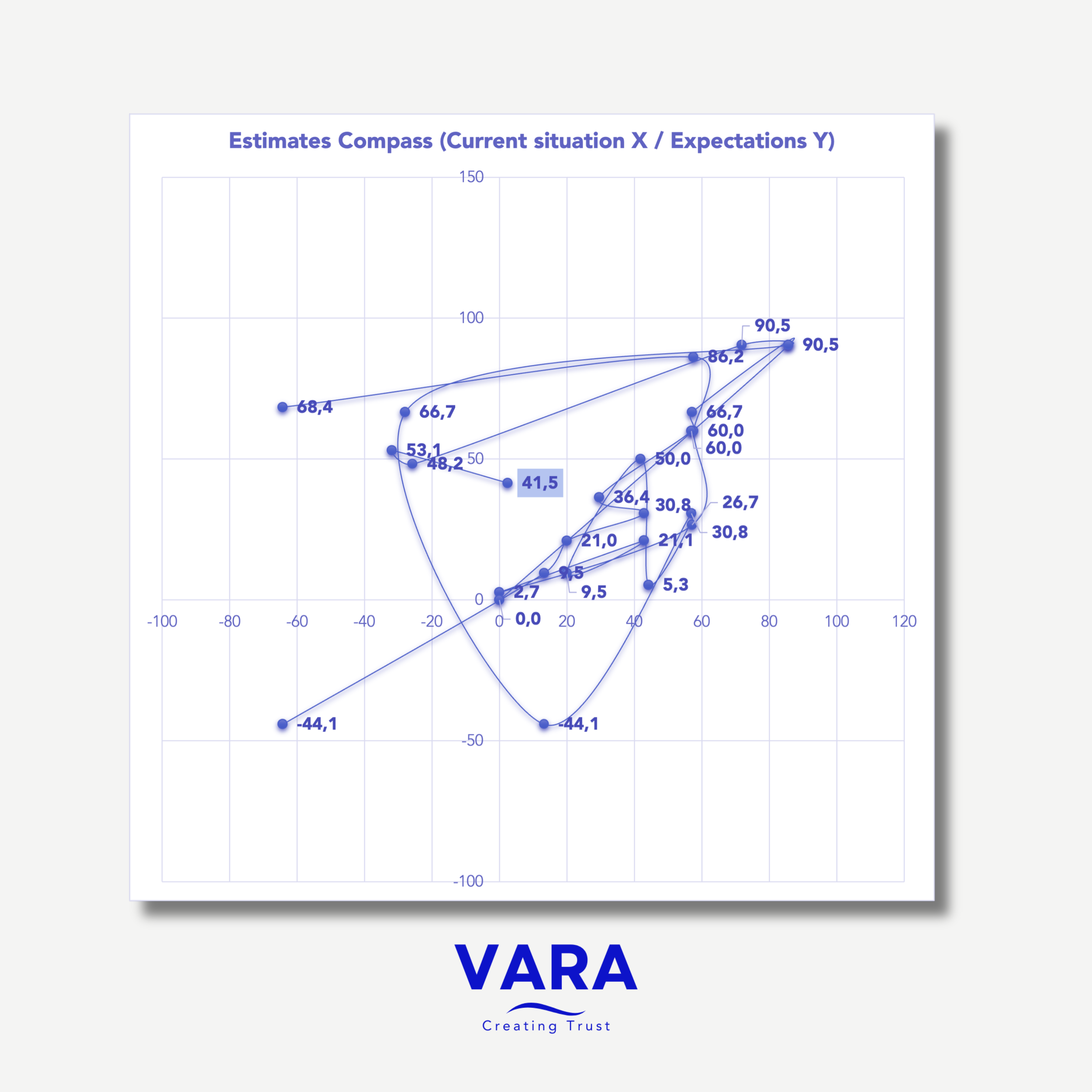 We have now for the first time more companies with better current situation, although average growth rates for the last twelve months are negative. Bottoming out? And growth expectations are not too aggressive. Could limit massive downside potential for the stocks.