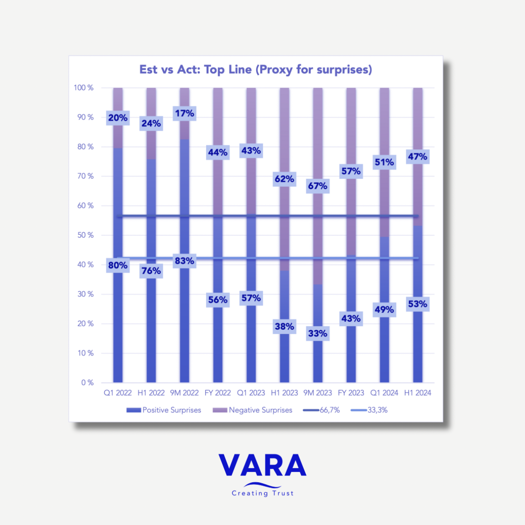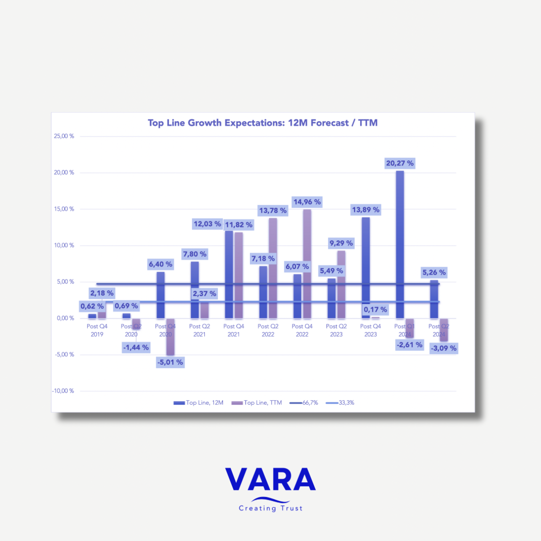 Expectations on top line are now considerably lower (5% vs. 20% after Q1 2024). The expectations are still just in the highest thirds, but should limit disappointment potential on top line growth.