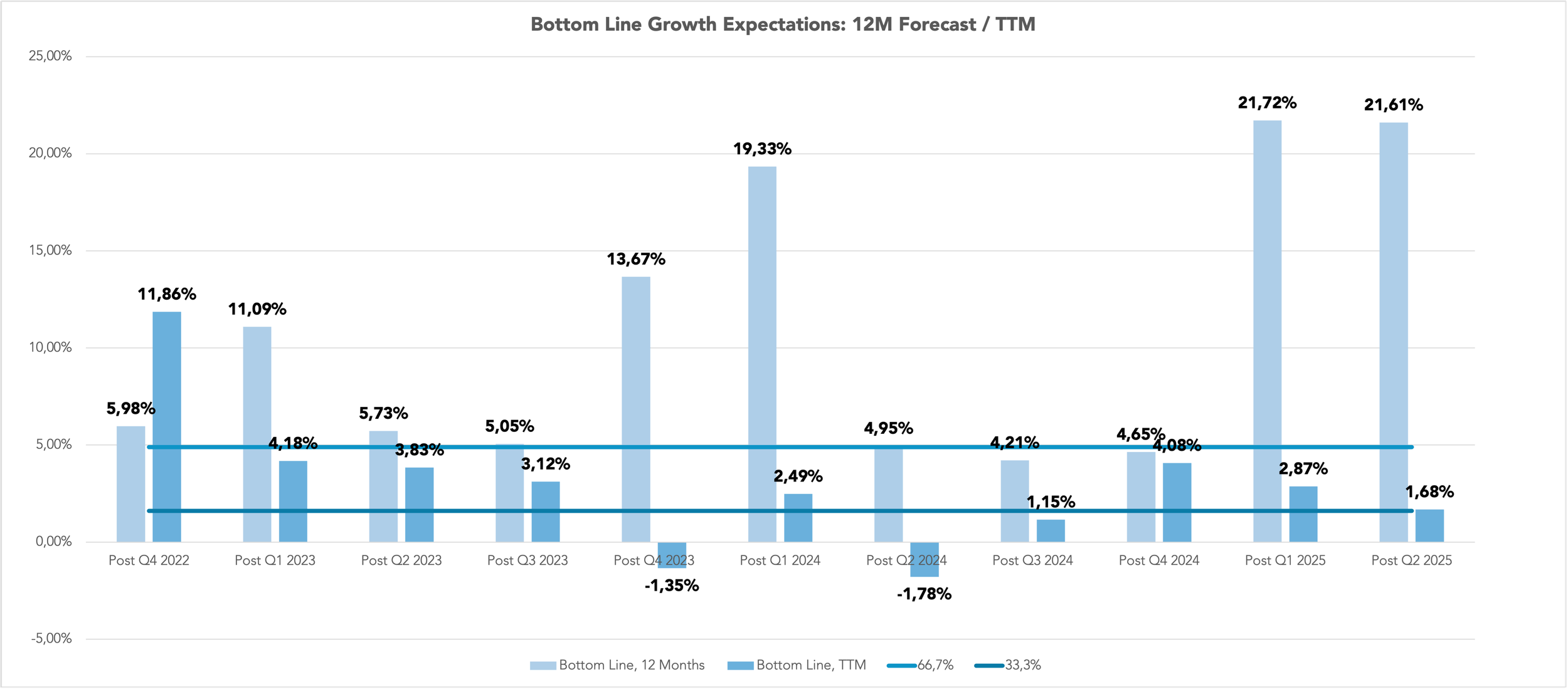 Bottom Line Growth Expectations: 12M Forecast/TTM, Q2/2025