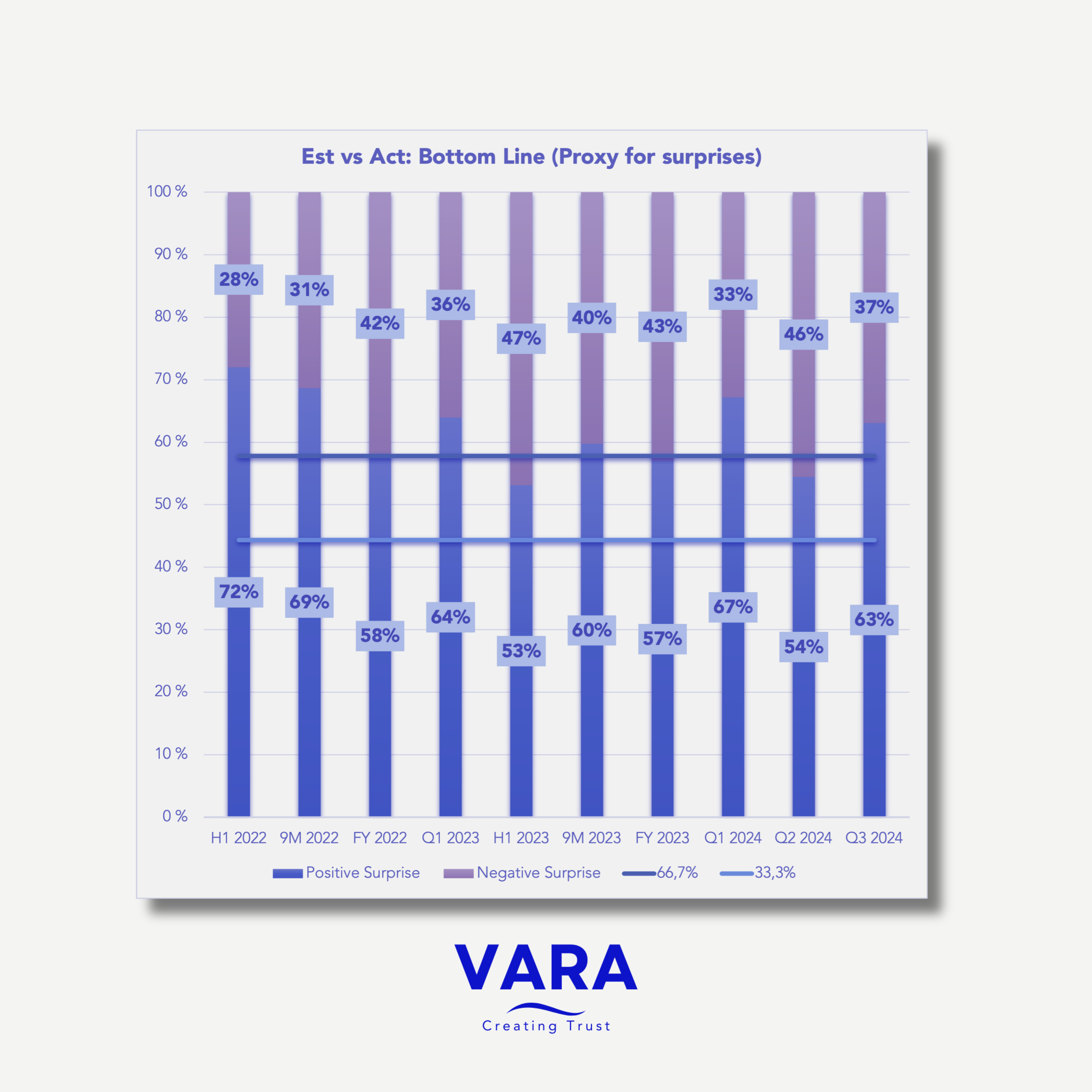 However, 63% of our client companies exceeded bottom-line expectations, which is a notable increase compared to Q2 (54%).