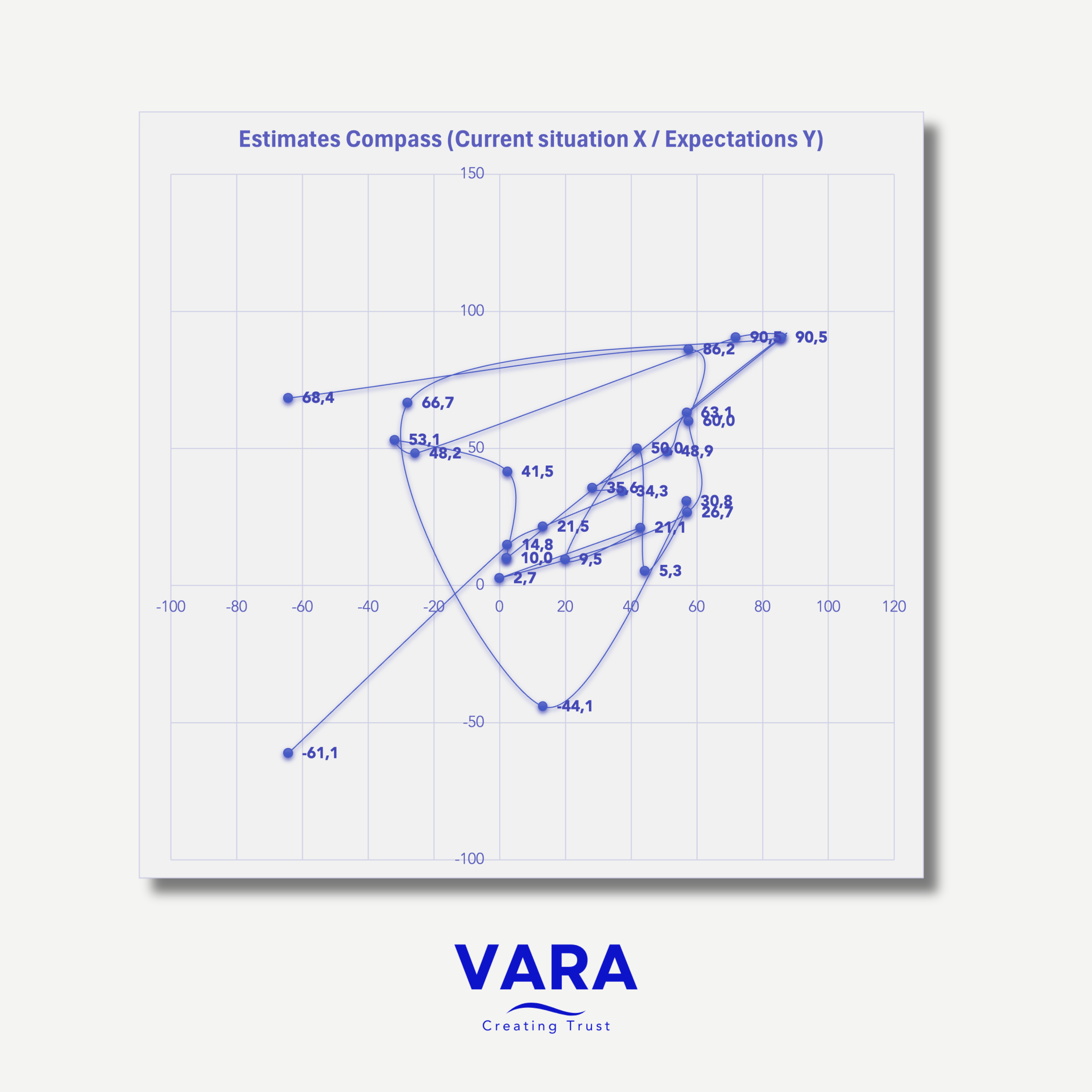 The current situation remains weak, but slightly positive. However, expectations have clearly declined, from 41 to 10.